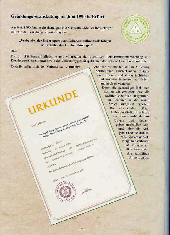 Der Landesverband der Lebensmittelkontrolleure Thüringen e.V. wurde im Jahr 1990 als Berufsverband der in Thüringen tätigen Lebensmittelkontrolleure gegründet.